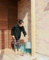 優しく軽いタッチのウール圧縮ニット素材。 伸縮性に優れ、触れた瞬間に温かさを感じる柔らかでボリュームのある風合いです。 ややAラインシルエットのショートジャケット。袖丈を短めの9分丈にして全体をコンパクトにすることで、ボトムとのバランスを取りやすくしました。