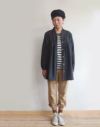 先染めコットンウールのサージにワッシャー加工を施した粗野でカジュアル感のある素材。