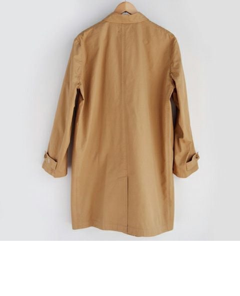 ハリとコシのある高密度の生地をソフトな風合いに仕上げた、rolca on the notes(ロルカ オン ザ ノーツ)のコート。 コットンギャバ(ギャバジン)の薄手生地を使用した、軽い1枚です。 ベーシックなステンカラーを裏なしで仕立て、ユニセックスで着られるデザインに。 椿オイルの成分を生地に閉じ込めることでしっとり上品な風合いに仕上がる椿オイル加工を施し、左袖口には蜂のワンポイント刺繍を入れました。 (裏地なし)