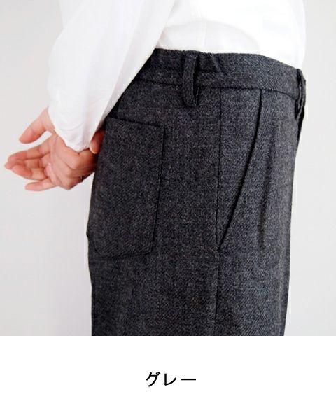 綾目がきれいに立ち、光沢感のある高級ボタニーウール素材。 ウエストは後ろゴム+ドローストリング仕様の膝下ハーフ丈パンツです。 センタープレスを入れ、裾をダブル仕立てにしたカジュアルすぎない上品なアイテムです。