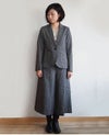 タテ糸にフレンチリネン糸、ヨコ糸に綿麻糸を使用したネップによるスラブ感が特徴の軽やかな素材。 ややハリもあるのでしっかりと、上品でいてカジュアルさも感じられるアイテムです。 裏地付きのたっぷりとした8分丈のフレアパンツはブーツにもフラットシューズにも相性抜群です。 また同素材のジャケットとセットアップの着こなしもオススメです。
