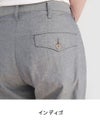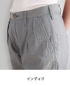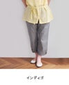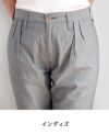 薄手高密度オックスのナチュラルな表情のくるぶし丈パンツ。 裾にかけてスリムなシルエットで裾をロールアップしたバランスがおすすめです。 インディゴ染ですがグレーがかった色なので、カジュアルすぎず上品にも着られます。