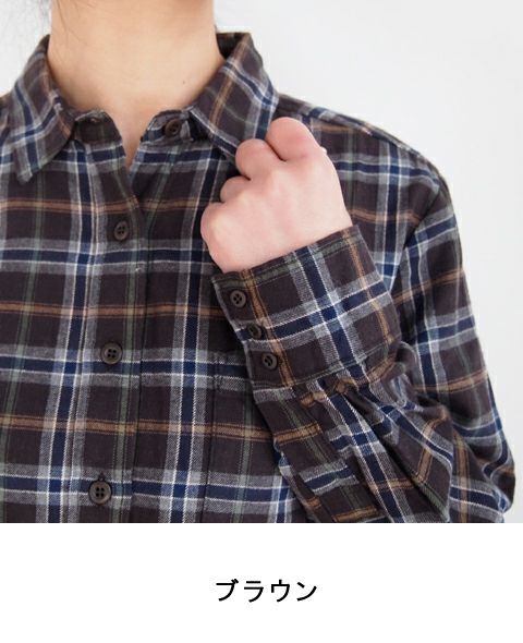 温かくてソフトな風合いのネル素材。 ベーシックなシャツワンピース型をアレンジし、ややローウエストで切替え、タックを入れました。 カジュアルイメージのネルチェックですが、ダークな色合いがクラシカルな印象に仕上がりました。