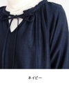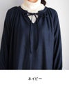 衿ぐりにリボンを通してギャザーを寄せたドローストリング仕様のネックラインがポイント。
