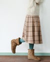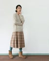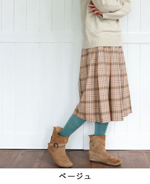 大きめチェックを落ち着きのあるカラーで織り上げた上品なウールスカート。 ウールならではの風合いと、クラシカルなチェック柄がトラッドな印象に。 着る人を選ばないアイテムで、コーディネートの色合わせもしやすいのが嬉しいポイント。 ヒップ周りをタイトにし、裾にかけてフレアーなラインが女性らしいシルエットです。 (裏地あり)