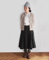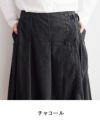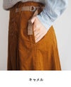 柔らかく肌触りのよい細畝が深みのある美しさのコーデュロイ。 ウエストからヒップラインまでは、タックですっきりと見せています。 トップスをインにしても、サイドのヘリンボンテープがアクセントに。 裏地は付けずに軽さのあるスカートに仕上げました。