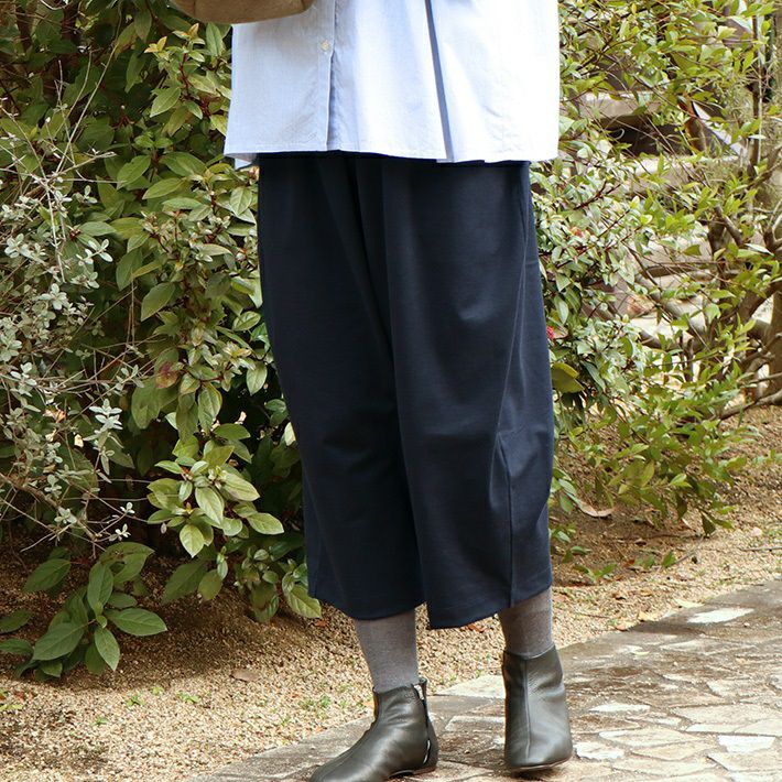 腰まわりにたっぷりと生地分量を入れた、バルーンシルエットのパンツです。