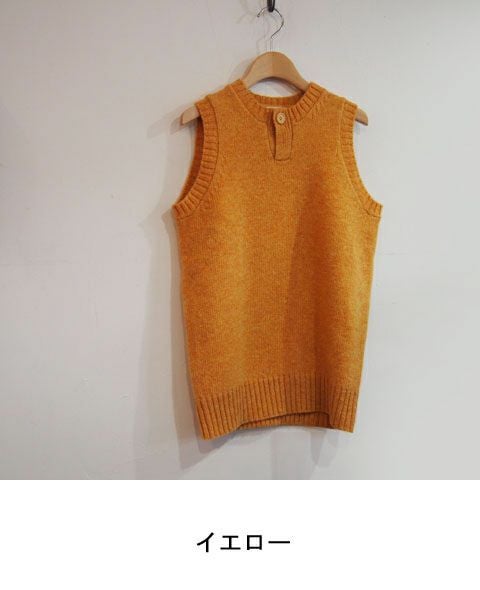 軽くて暖かいシェットランドウールで作られたベストは、ネックの開きがコンパクトでシンプルなデザインです。