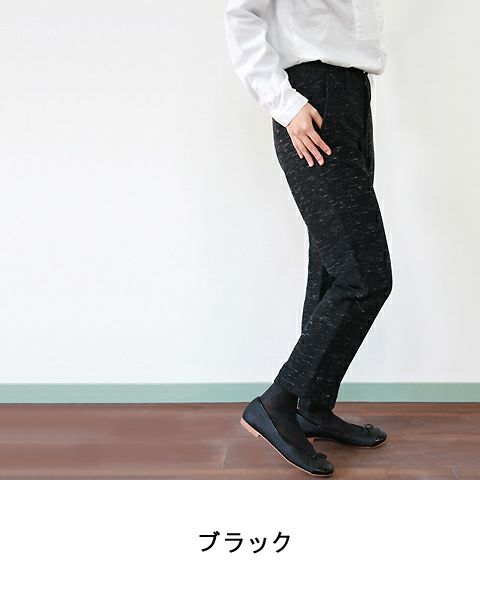 ドビー織機を使用しニットのような質感に仕上げた上品なシルエットの9分丈パンツ。 淡色のネップが全体に入った肉厚で暖かみのある生地は1枚でコーディネートのアクセントに。 シンプルなトップスと合わせてもスパイスの効いた着こなしを楽しめます。 ノータックの腰回り、裾に向かって細なるシルエットはスタイルをすっきりと見せてくれます。 (裏地なし)