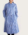 シルクのような光沢と滑らかな風合いが特徴の最高級ランクのGIZA綿を使用した細番手ブロード素材。 丸衿が優しい印象のAラインのシャツワンピースは、ステッチをできるだけ入れずに柔らかなイメージに仕立てました。 共布のリボンは取り外しができます。