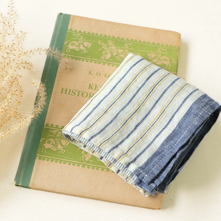 リトアニアリネン100%の「Lino e Lina(リーノ・エ・リーナ)」のハンカチ。 たたむとやや厚みがあり、ふんわりとした手触りです。