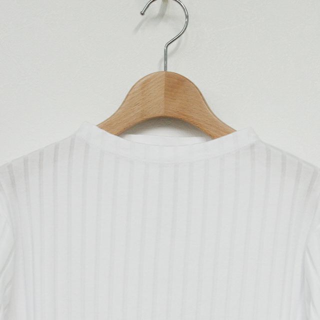 CLICK PEBBLE(クリック ぺブル)の、さらりと着やすい長袖カットソープルオーバー。 薄手生地ですが、縦に走ったリブがボリュームとふくらみを生む、しっかり感のある1枚です。 やや光沢を感じる滑らかな表面は、上品にもスタイリッシュにも、大人のコーディネートによく似合いそう。 ホワイトはやや透け感が生じます。