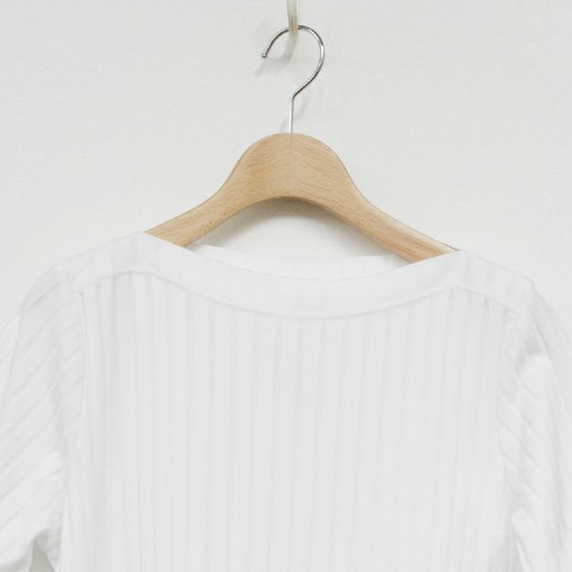 CLICK PEBBLE(クリック ぺブル)の、さらりと着やすい半袖カットソープルオーバー。 薄手生地ですが、縦に走ったリブがボリュームとふくらみを生む、しっかり感のある1枚です。 やや光沢を感じる滑らかな表面は、上品にもスタイリッシュにも、大人のコーディネートによく似合いそう。 ホワイトはやや透け感が生じます。