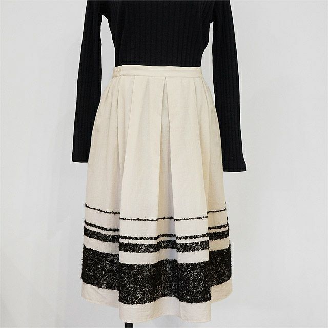 CLICK PEBBLE(クリック ぺブル)の、さらりと着やすいボーダー柄のワンピース。 ジャカード織機でウール/ポリエステルの黒の意匠糸をランダムに織り込んだ生地です。 ボーダー柄でシンプルなデザインが引き立つようにしています。ベースの生地はさらりとしたタッチのコットン100%。 インナー付で販売です。