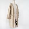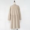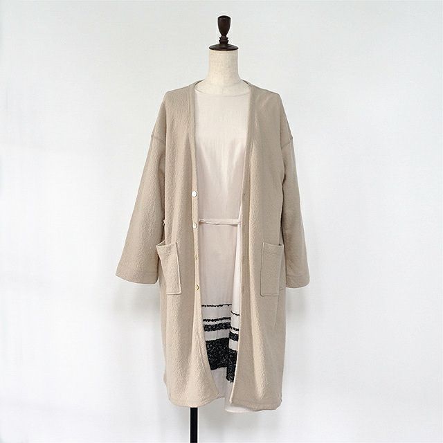 CLICK PEBBLE(クリック ぺブル)の、さらりと着やすいロングカーディガン。 細かい糸で編んだウール天竺を縮絨した、薄手で軽くてウォーム感のある天竺です。 表面の毛並のような独特のシボが味わい深い素材です。 切りっぱなしのデザインになっています。