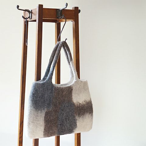 縫製技術を使わず、羊毛を石鹸水で捏ねるだけで作り上げられた、Ena Kuam(エナ クアム)のフェルトバッグ。 染色をしていない羊のそのままの毛の色を使っています。 いろいろな羊毛の色を混ぜることで、表情豊かでナチュラルなカラーが出ています。 持ち手は肩にも掛けられる長さで、マチはないものの雑誌が入るほどのサイズで容量は見た目以上。 コーディネイトのアクセントに役立ってくれそうです。