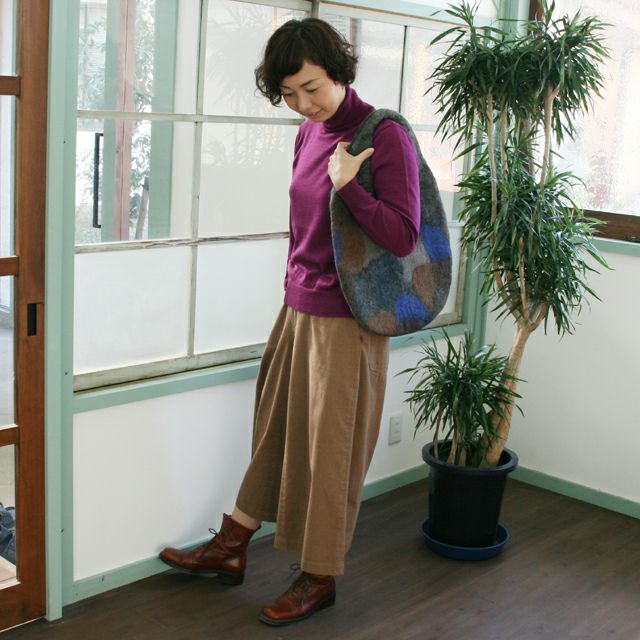 縫製技術を使わず、羊毛を石鹸水で捏ねるだけで作り上げられた、Ena Kuam(エナ クアム)のフェルトバッグ。