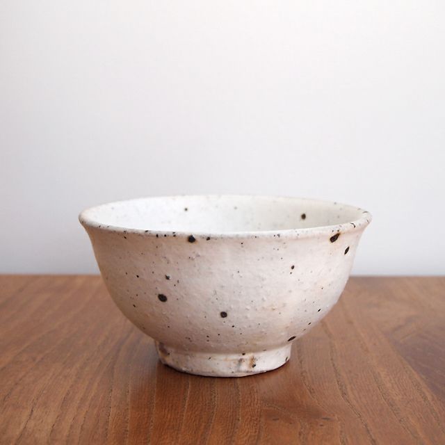 赤土に白化粧と呼ばれる白い土を流し掛け、その上に薄く釉を施した「粉引」シリーズのひとつです。