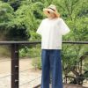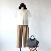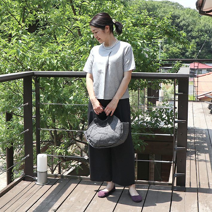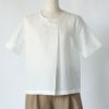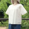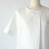 waltz for rolca(ワルツ フォー ロルカ)のシンプルなクルーネック半袖プルオーバーです。 コットンの柔らかさと、リネンのシャリ感、両方の良さを感じられる綿麻素材。 細番手の糸を使い織り上げられた綿麻シャンブレーは、ややハリを持ち、夏に心地よいさらりとした肌触り。 一見シンプルですが、前身頃の左寄りに深めのタックをとったアシンメトリーなデザインがアクセント。 裾に動きが出るので、胸まわりはすっきり見えるようにタイトに。 開きすぎない衿ぐり、程よい着丈は飽きのこない黄金バランスでまとめています。袖口のスリットもアクセント。