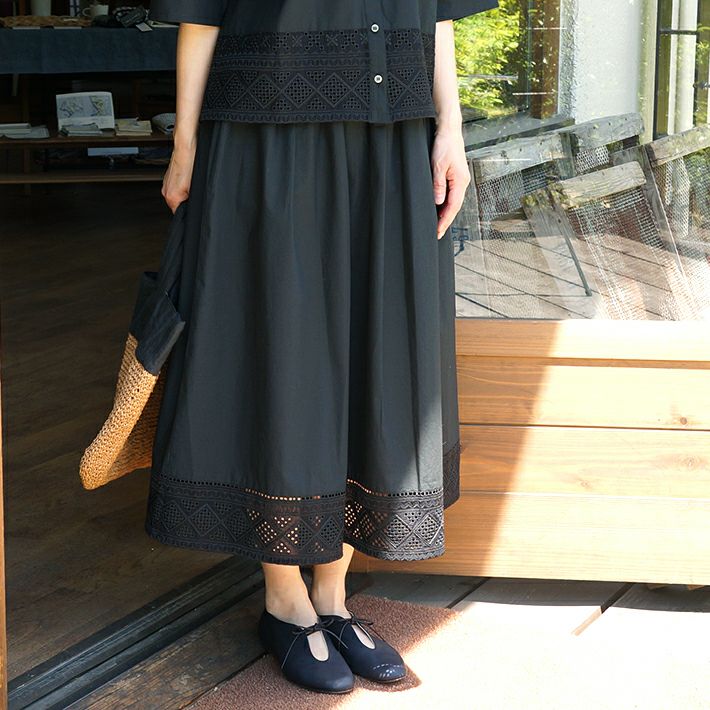 同じ生地を使った「コットンタイプライターレースブラウス」とセットアップで着られます。