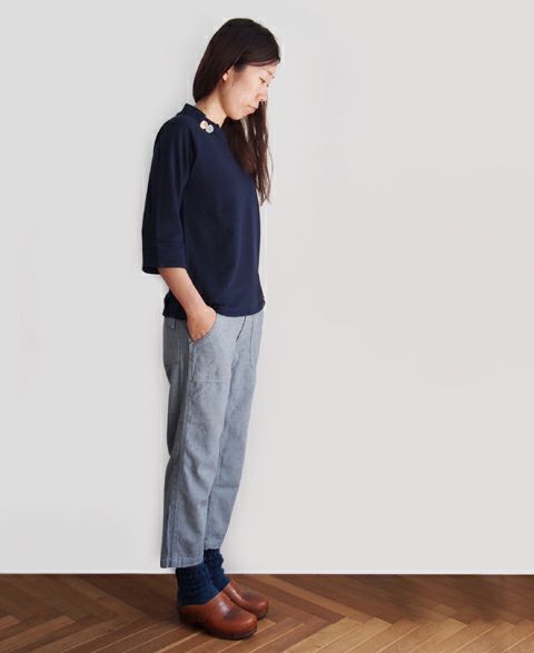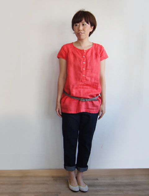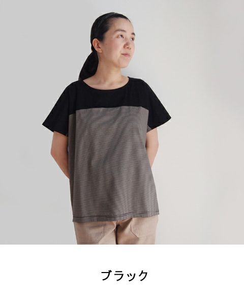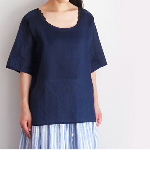 コットンリネン半袖切替プルオーバー