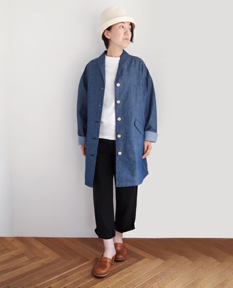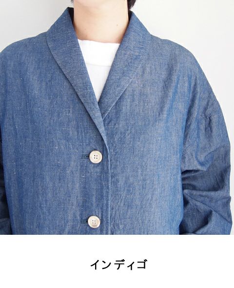 コットンリネンシャンブレーショールカラーコート