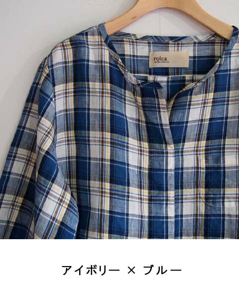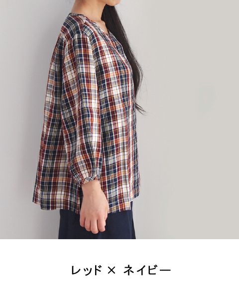 リネンチェック フロントタックプルオーバー