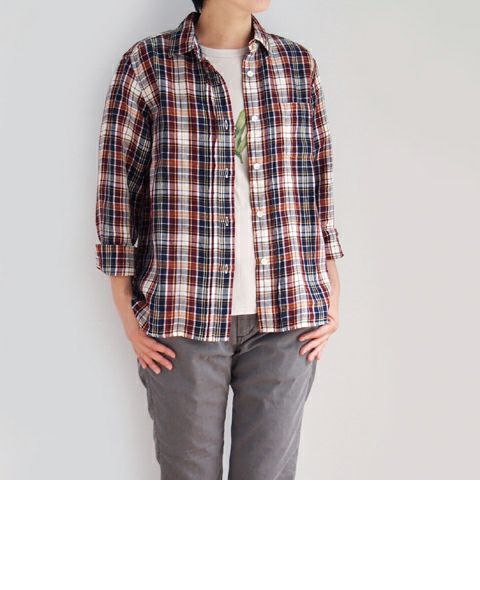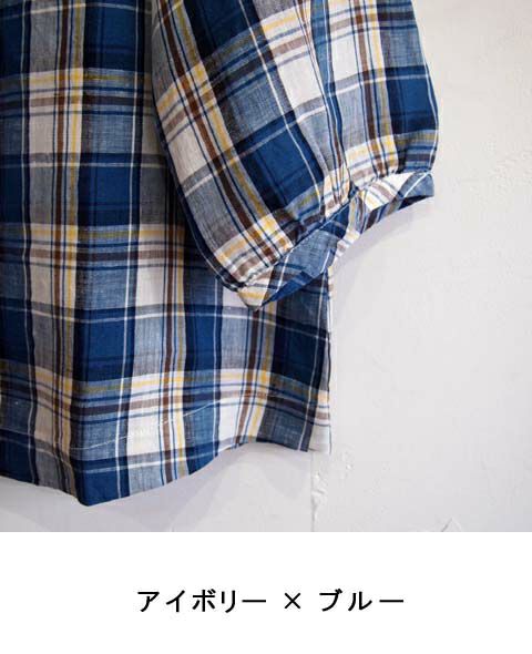 リネンチェック ピンタックシャツ