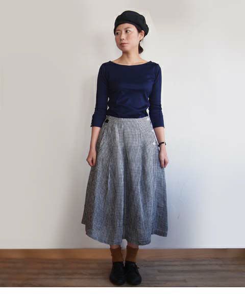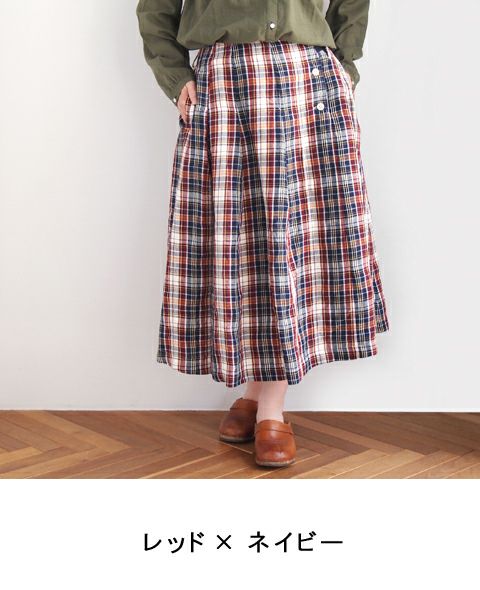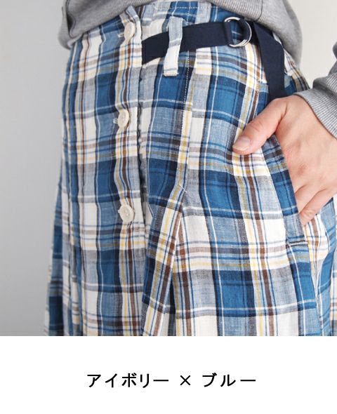 リネンチェックタックスカート