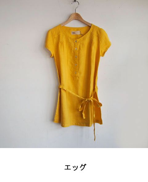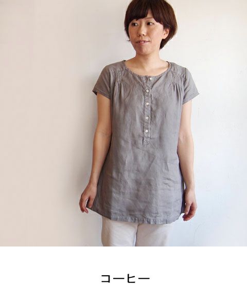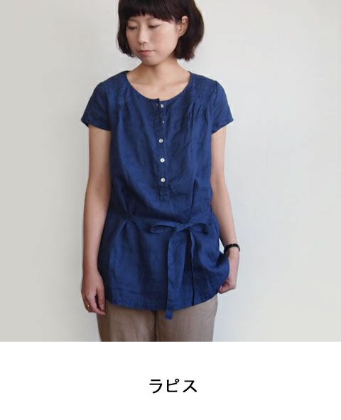 アイリッシュリネン後染キャップスリーブプルオーバー
