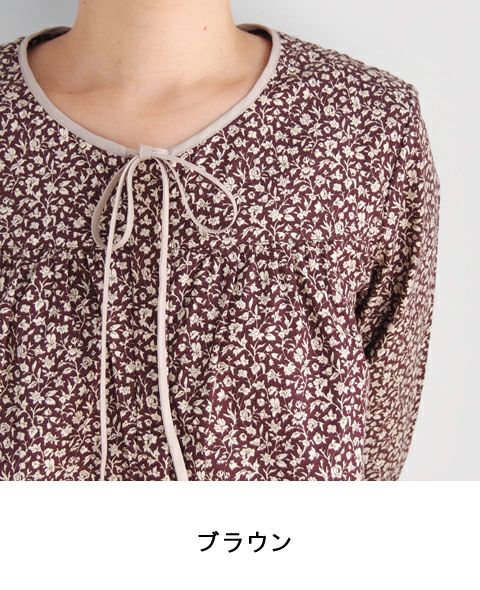 フラワープリントリボンブラウス