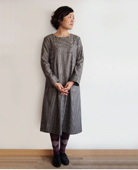 ウールギンガム切替ワンピース