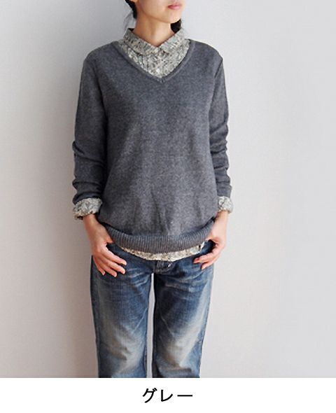 コットンウールVネックプルオーバー
