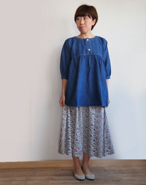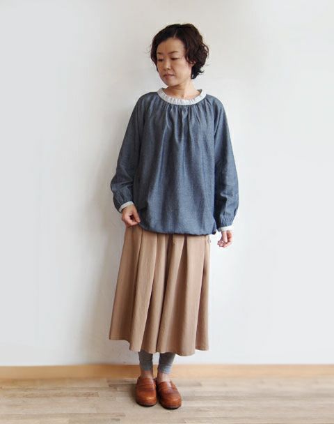 ソフトデニムギャザープルオーバー