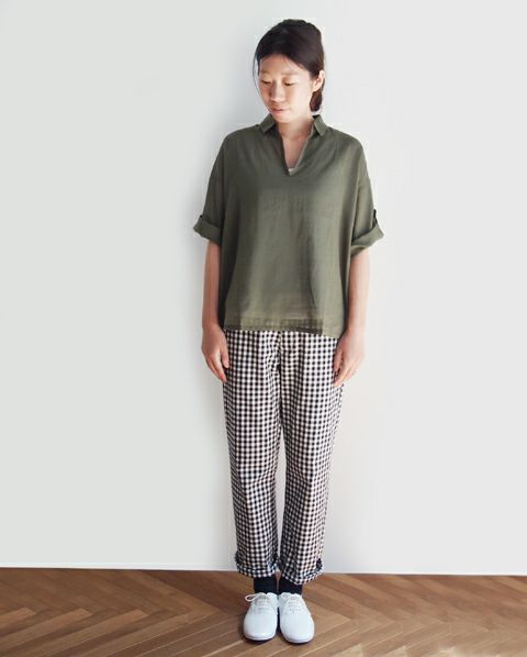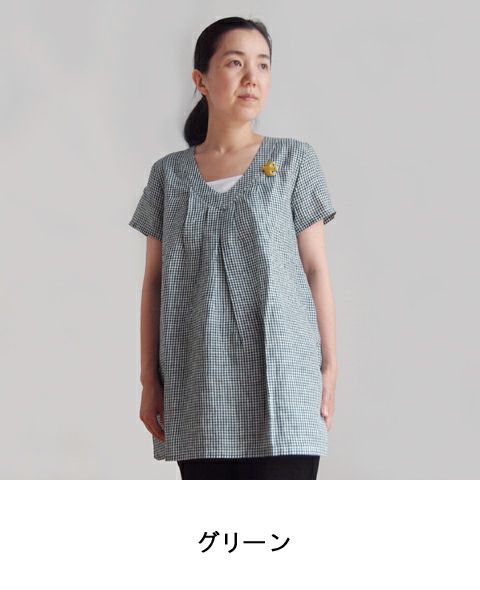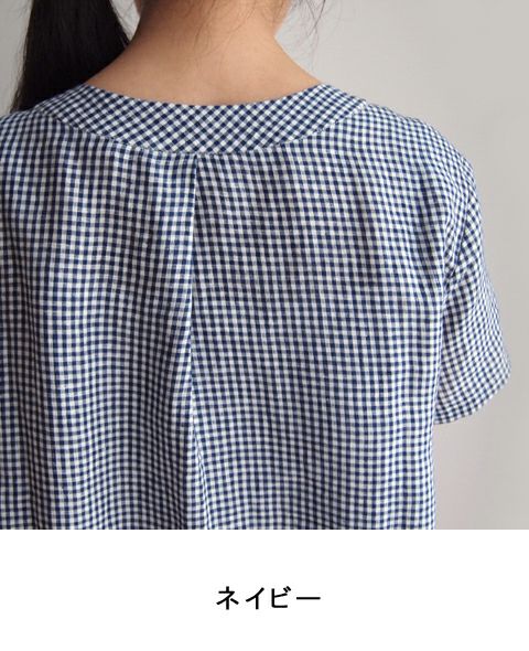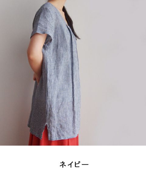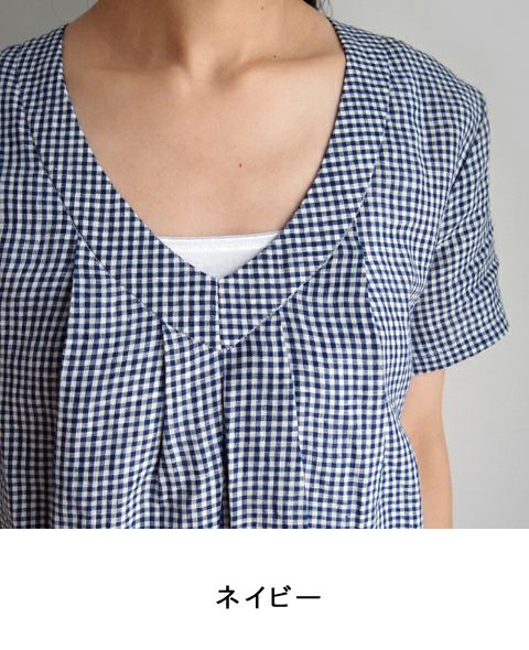 アイリッシュリネン ギンガムV/Nプルオーバー