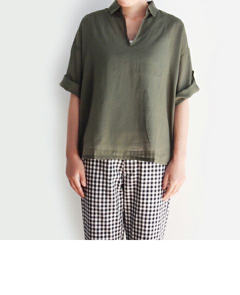 スラブローンミニ衿プルオーバー