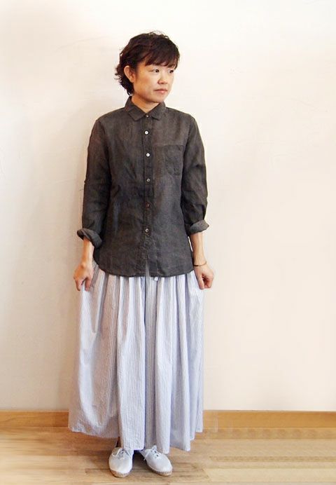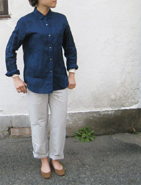 手染めアイリッシュリネン ロールアップシャツ Men's size1,2