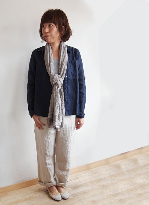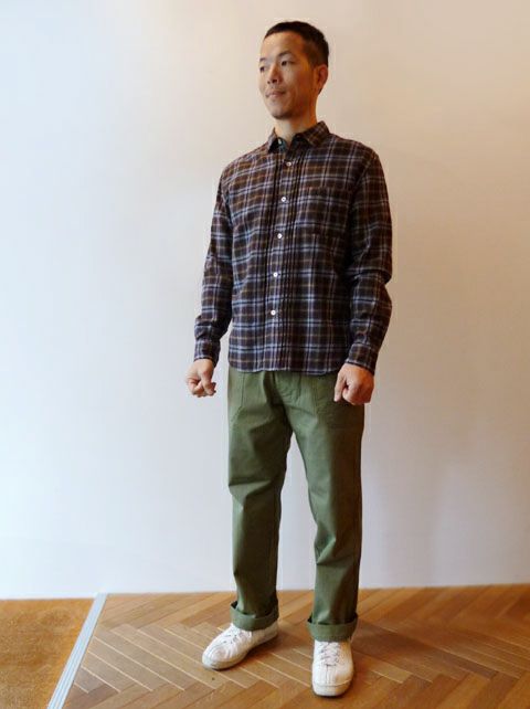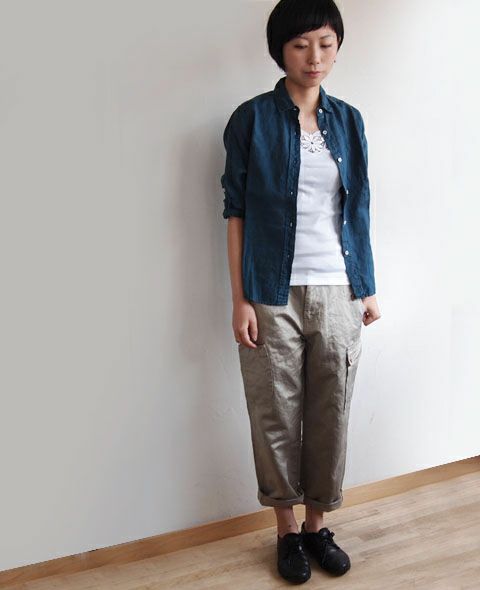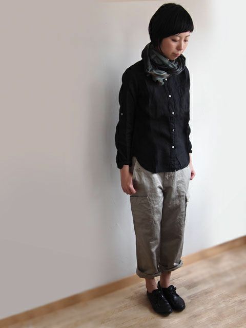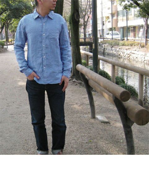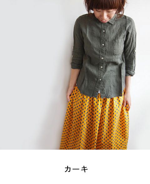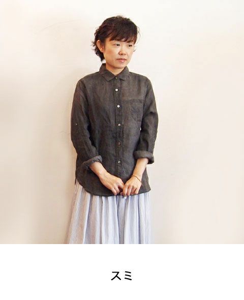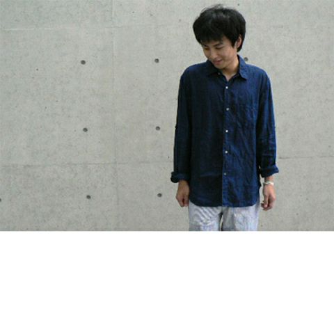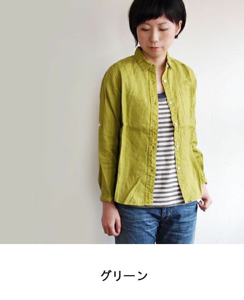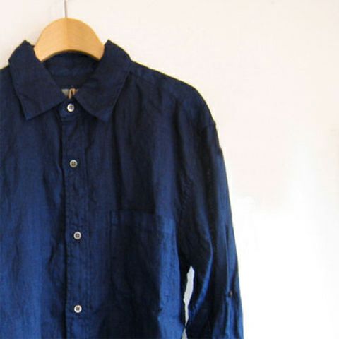 手染めアイリッシュリネン ロールアップシャツ Men's size1,2