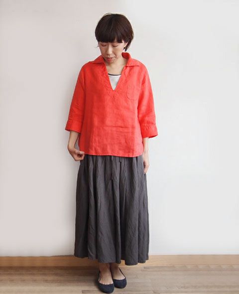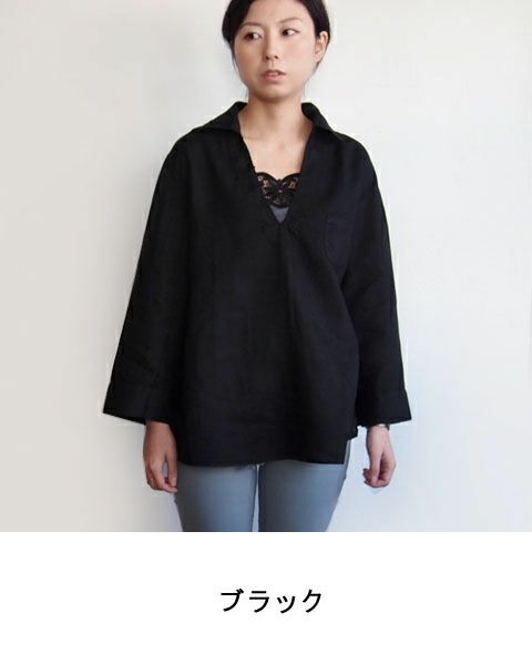 アイリッシュリネン後染スプーンNプルオーバー size1