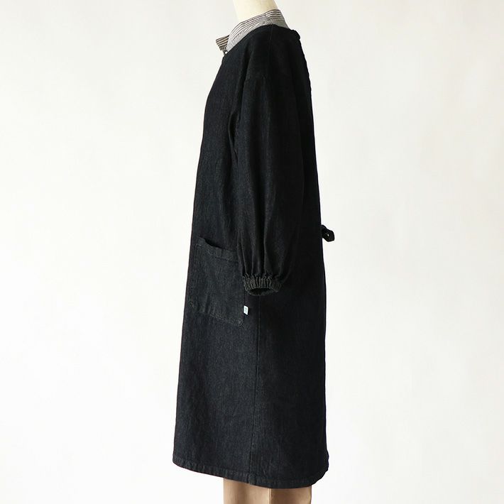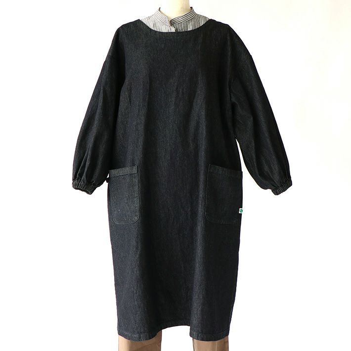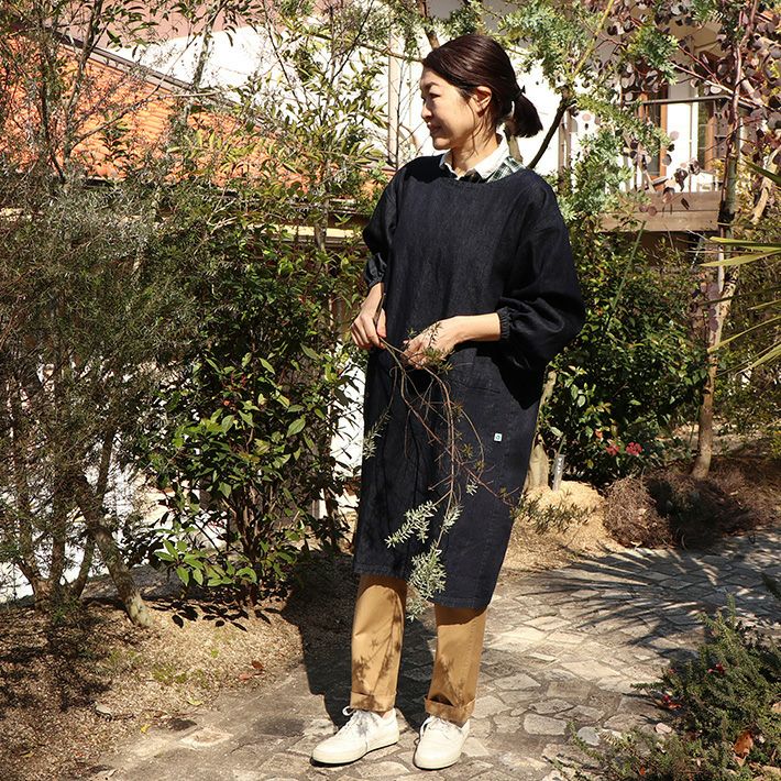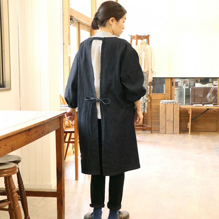 [森の8カテン]ドットダンガリー ラップフルエプロン