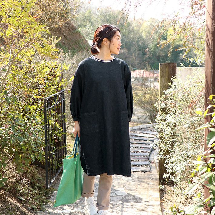 [LE VENT SOUFFLE]リネンバンドカラーワンピース