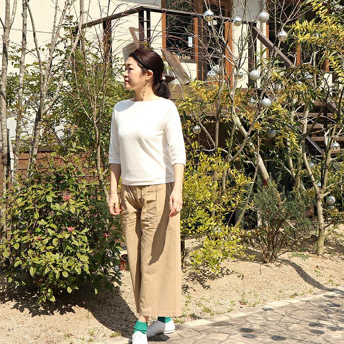 [rolca]コットンピーチ ワイドクロップドパンツ