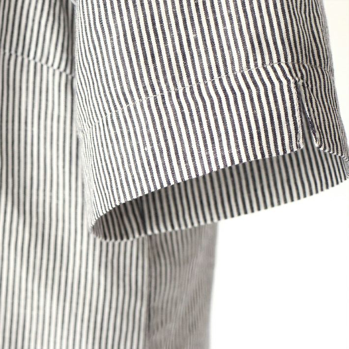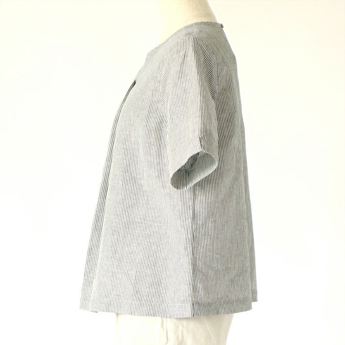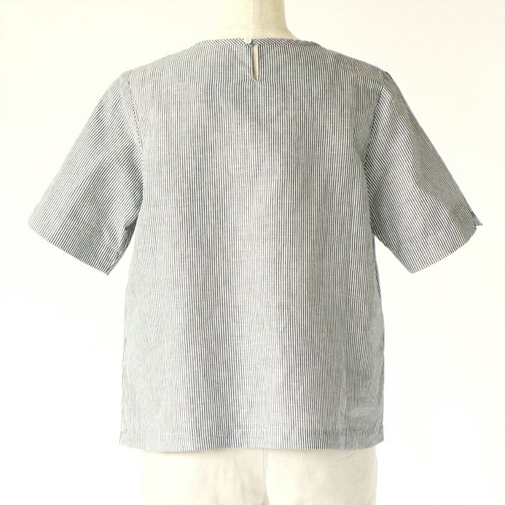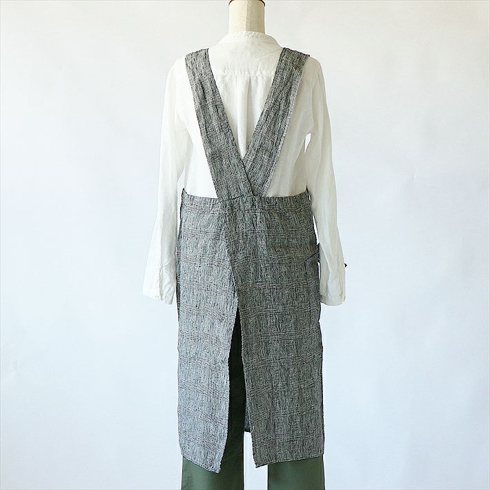 [森の8カテン]綿麻ストライプ バッククロスエプロン