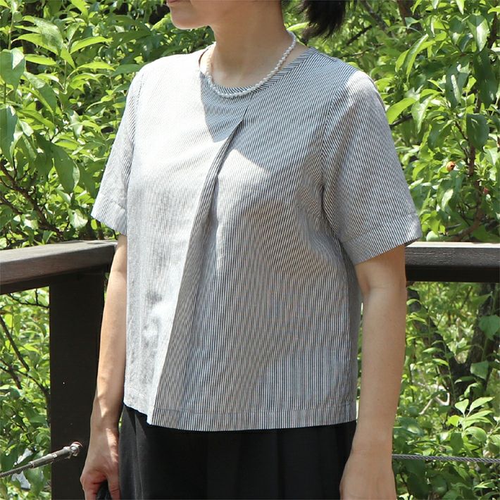 [rolca]GIZAコットン丸衿比翼ブラウス